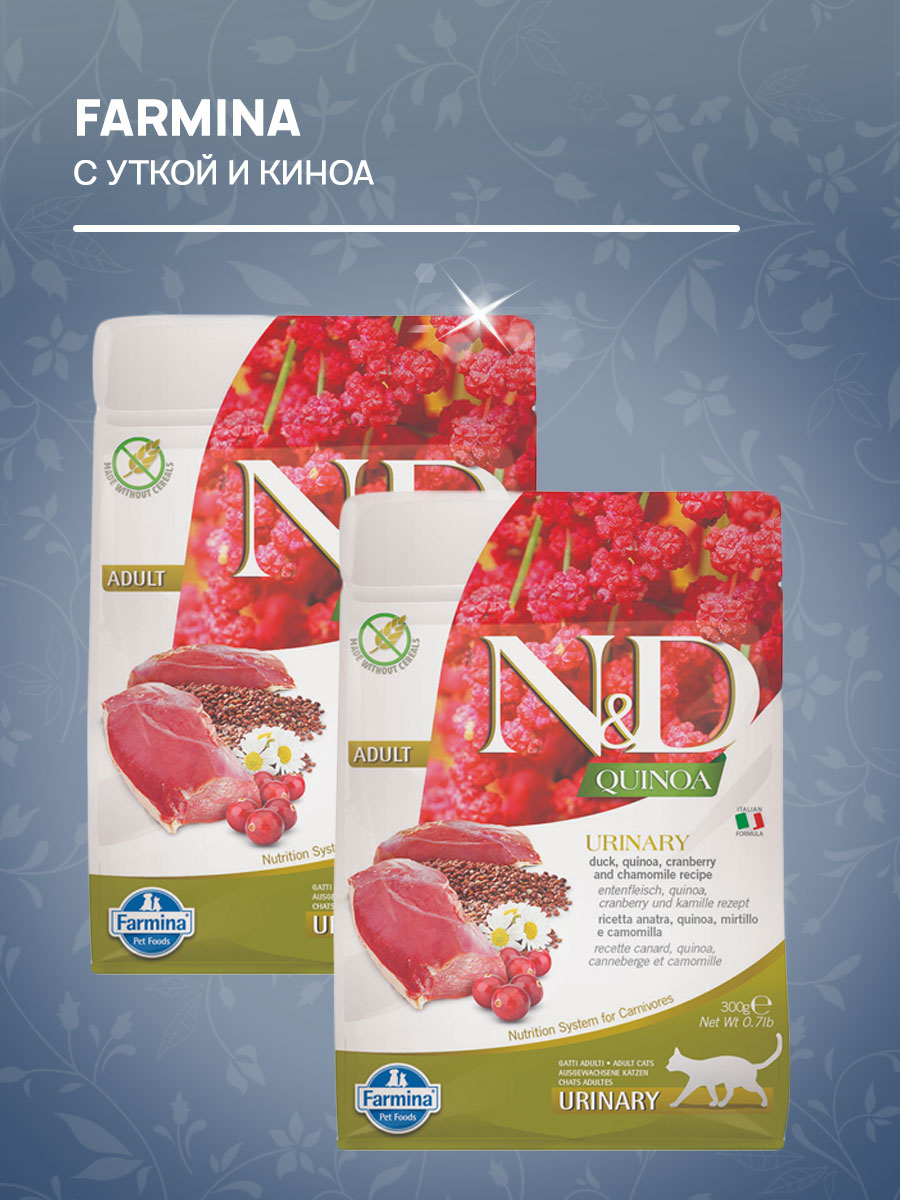 Сухой корм для кошек FARMINA N&D GRAIN FREE QUINOA URINARY беззерновой для профилактики мочекаменной болезни утка, киноа (0,3 кг)