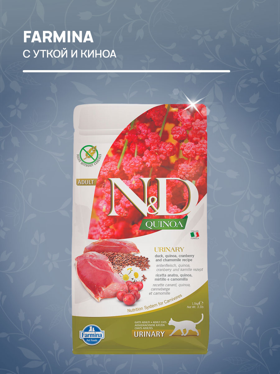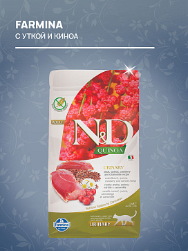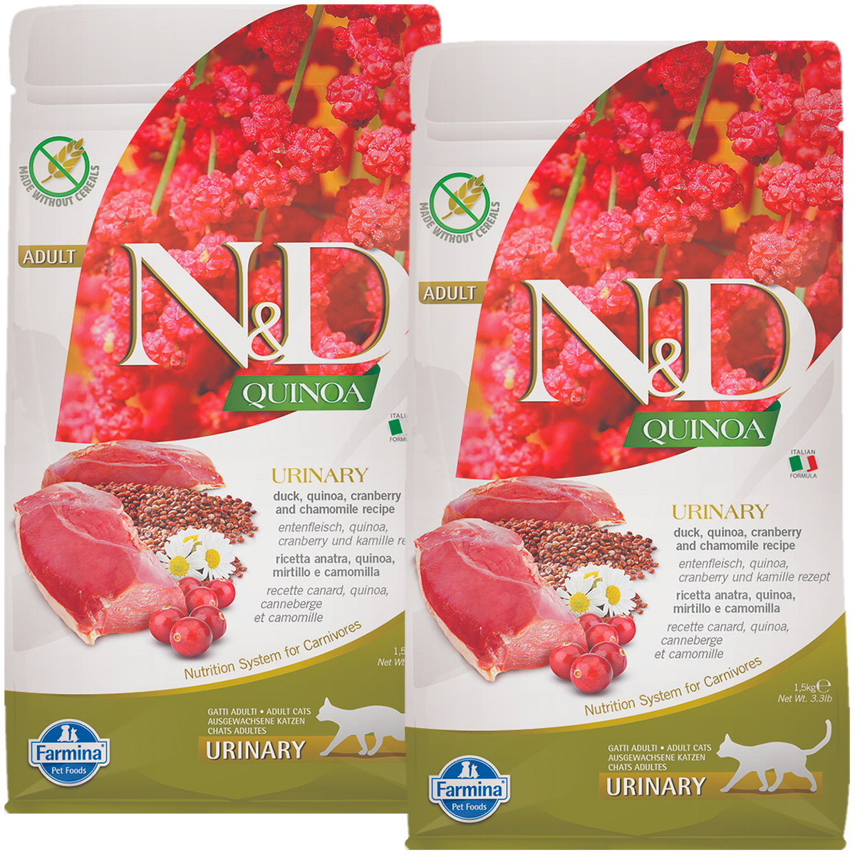 Сухой корм для кошек FARMINA N&D GRAIN FREE QUINOA URINARY беззерновой для профилактики мочекаменной болезни утка, киноа (1,5 + 1,5 кг)