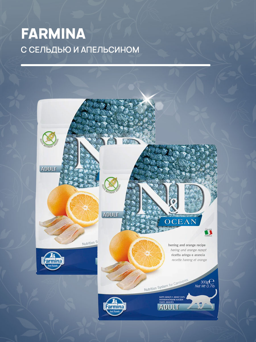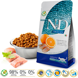Сухой корм для кошек FARMINA N&D OCEAN беззерновой сельдь, апельсин (0,3 кг х 4 шт)