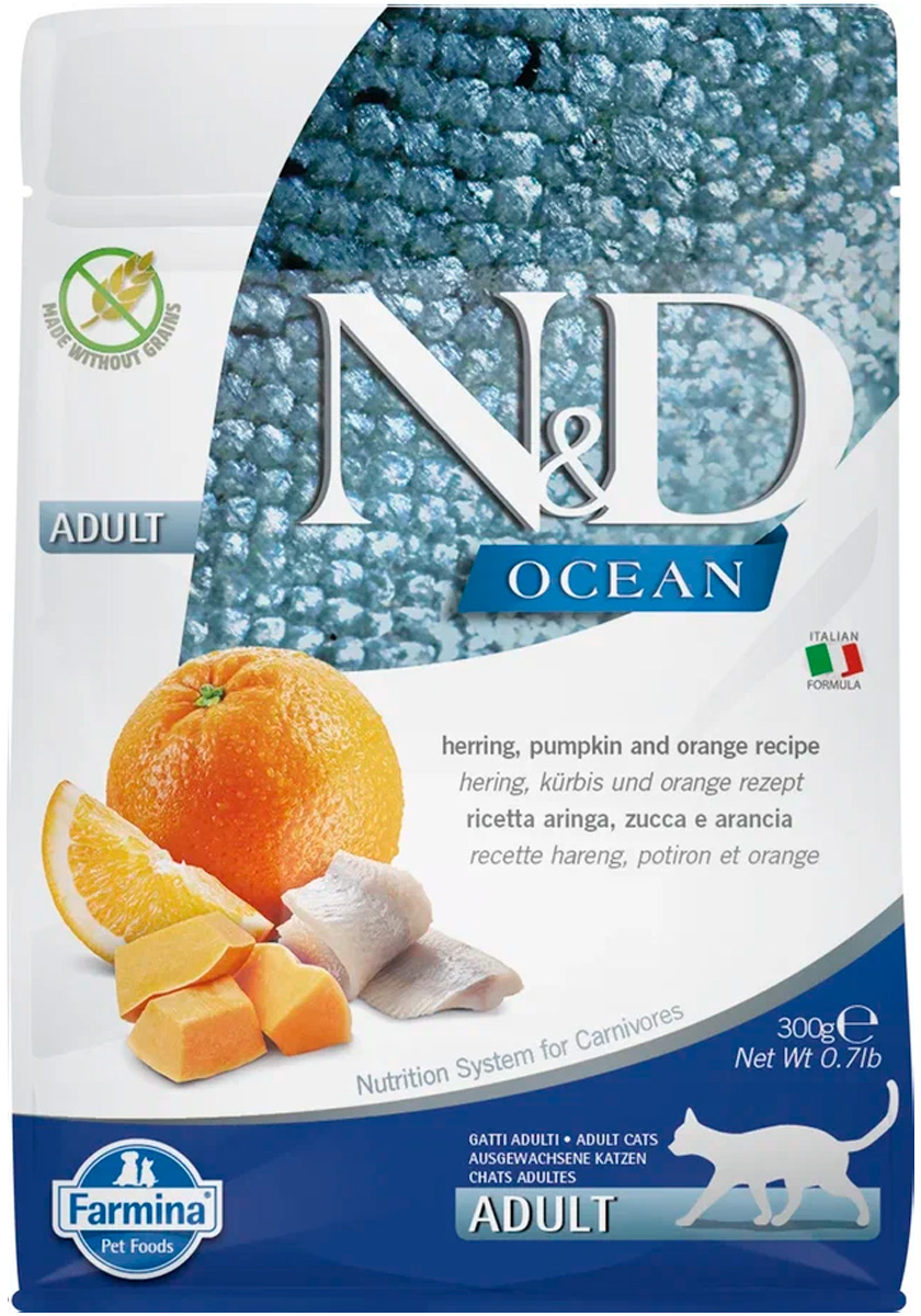 Сухой корм для кошек FARMINA N&D OCEAN беззерновой сельдь, тыква, апельсин (0,3 кг)