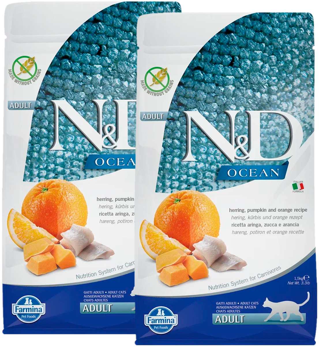 Сухой корм для кошек FARMINA N&D OCEAN беззерновой сельдь, тыква, апельсин (1,5 + 1,5 кг)