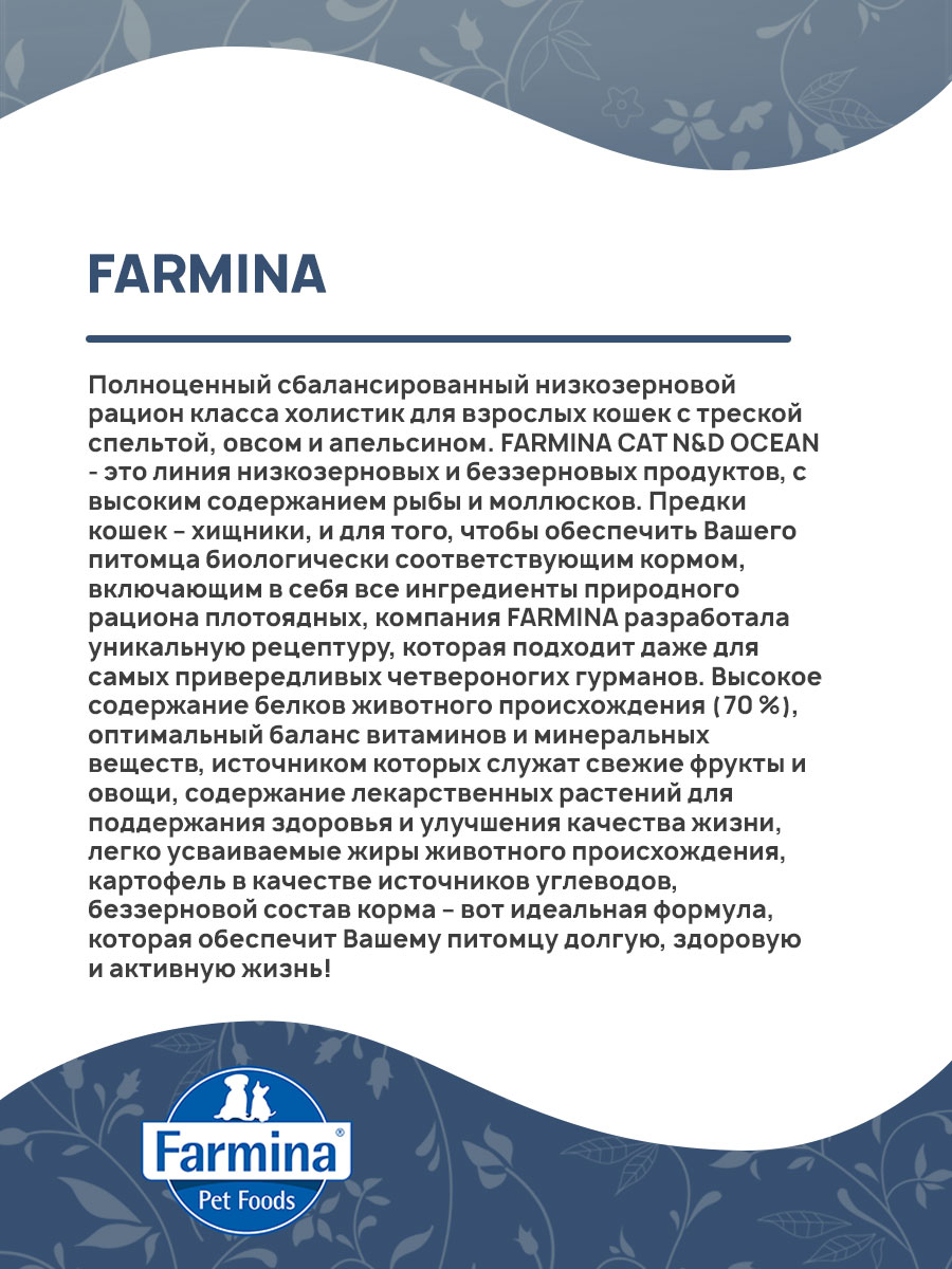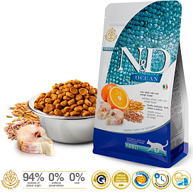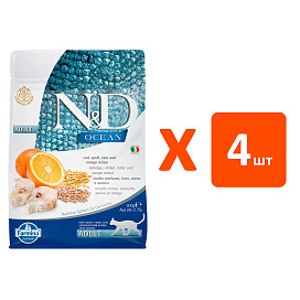 Сухой корм для кошек FARMINA N&D OCEAN низкозерновой треска, спельта, овес, апельсин (0,3 кг х 4 шт)