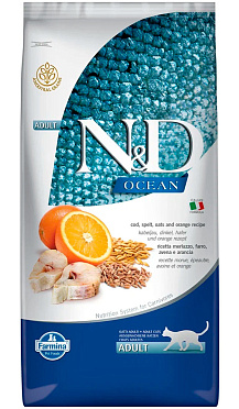 Сухой корм для кошек FARMINA N&D OCEAN низкозерновой треска, спельта, овес, апельсин (10 кг)