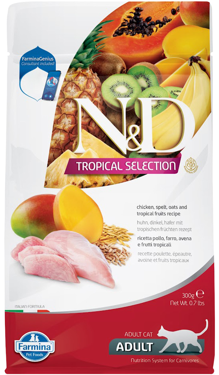 Сухой корм для кошек FARMINA N&D TROPICAL SELECTION CHICKEN низкозерновой курица, спельта, овес, тропические фрукты (0,3 кг)