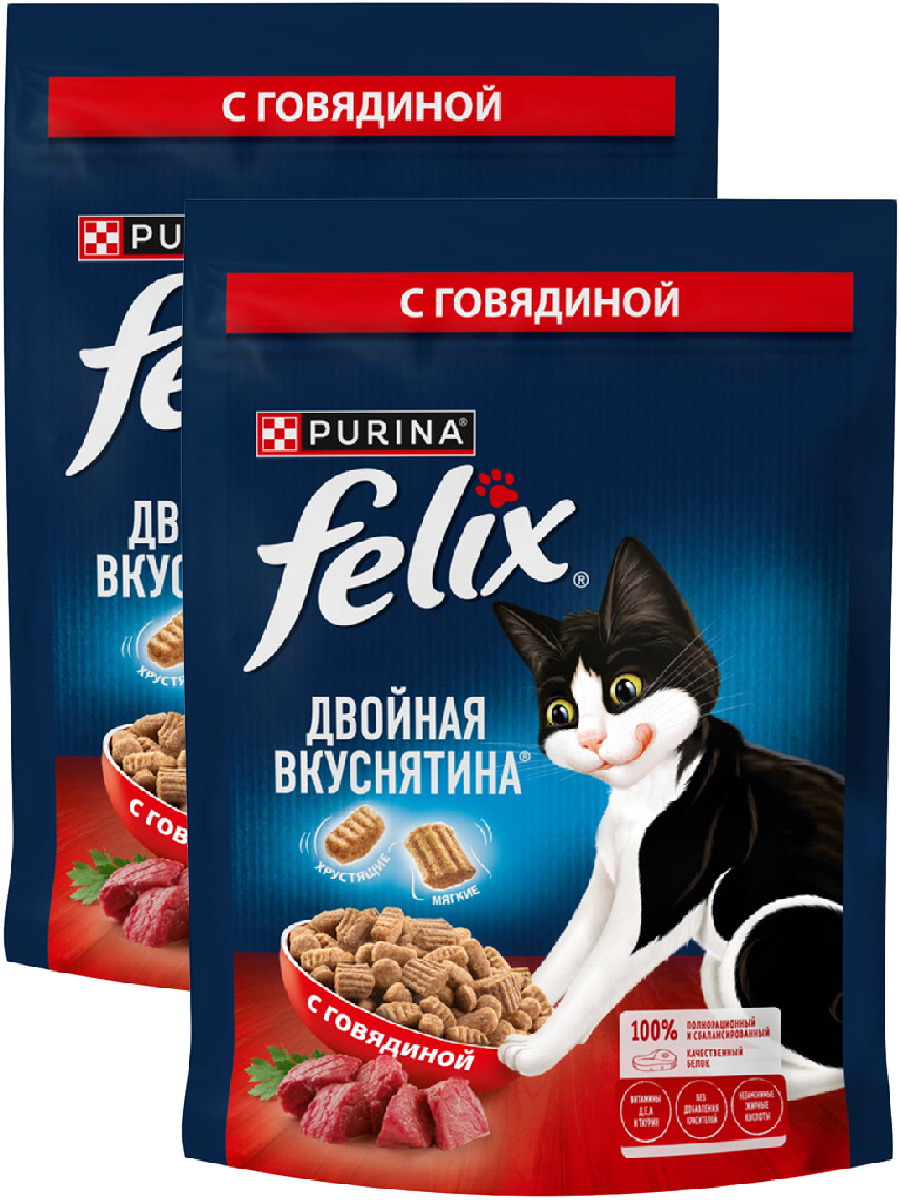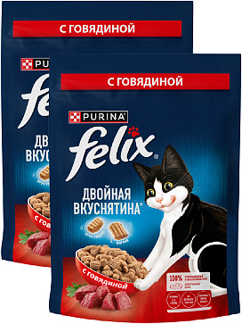 Сухой корм для кошек FELIX ДВОЙНАЯ ВКУСНЯТИНА говядина (0,2 + 0,2 кг)Возраст питомца