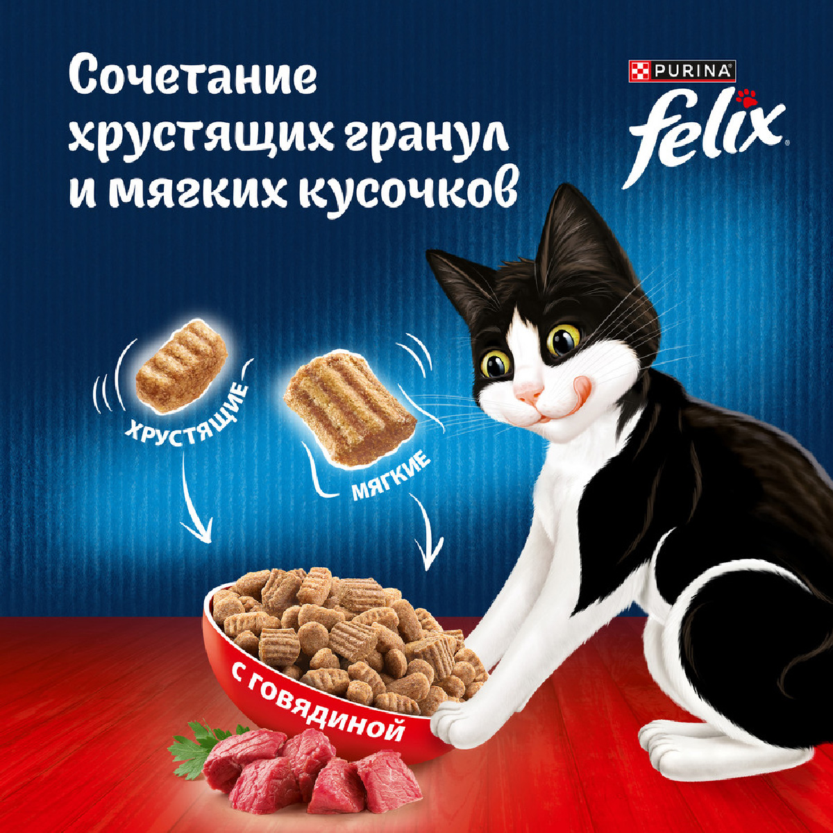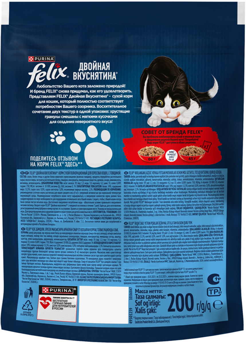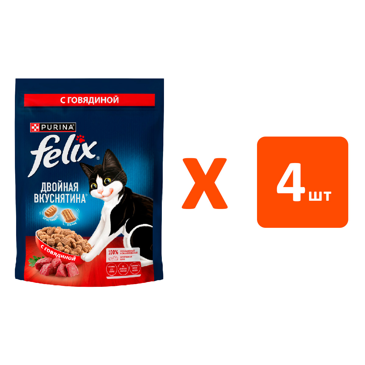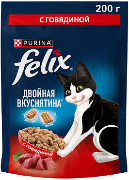 Сухой корм для кошек FELIX ДВОЙНАЯ ВКУСНЯТИНА говядина (0,2 кг х 4 шт)Возраст питомца