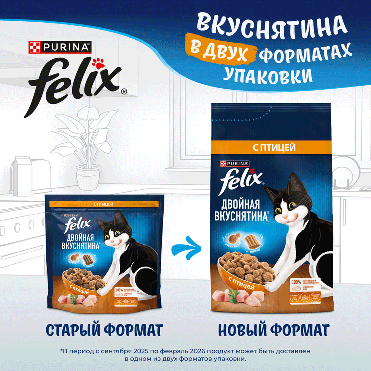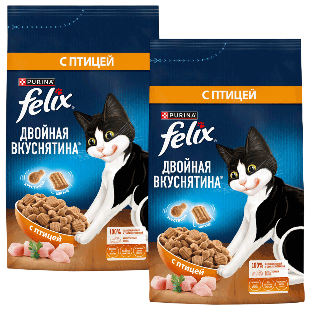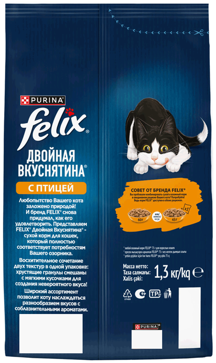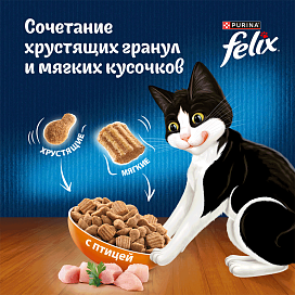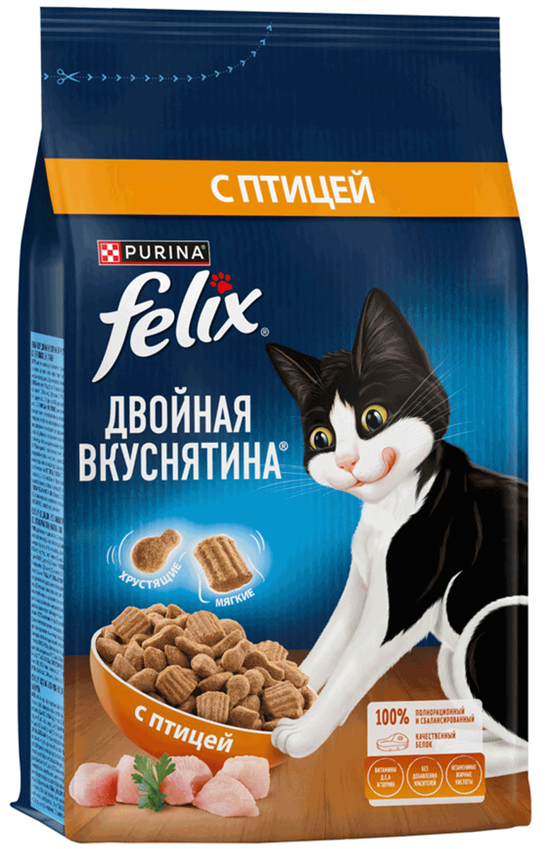 Сухой корм для кошек FELIX ДВОЙНАЯ ВКУСНЯТИНА птица (1,3 + 1,3 кг)Возраст питомца