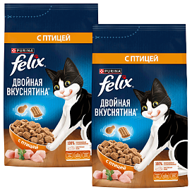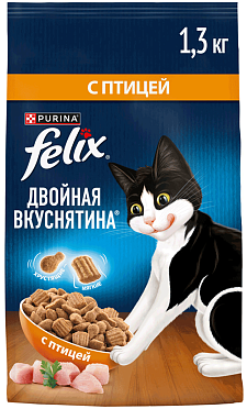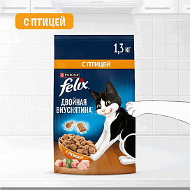 Сухой корм для кошек FELIX ДВОЙНАЯ ВКУСНЯТИНА птица (1,3 + 1,3 кг)