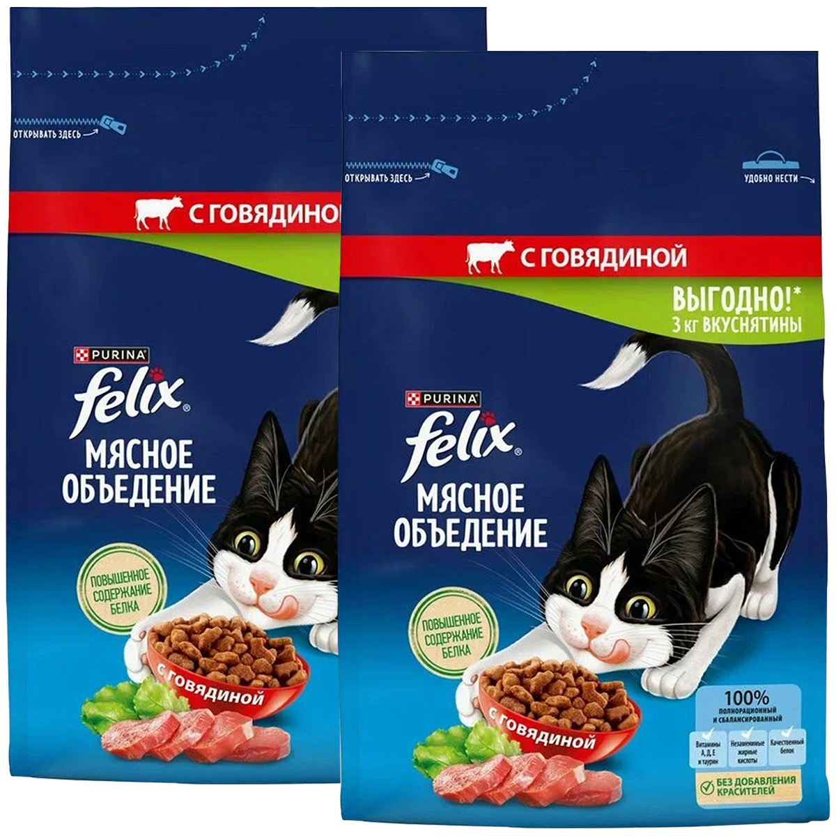 Сухой корм для кошек FELIX МЯСНОЕ ОБЪЕДЕНИЕ говядина (3 + 3 кг)Возраст питомца