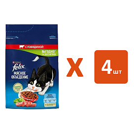 Сухой корм для кошек FELIX МЯСНОЕ ОБЪЕДЕНИЕ говядина (3 кг х 4 шт)Возраст питомца