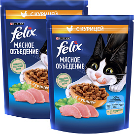 Сухой корм для кошек FELIX МЯСНОЕ ОБЪЕДЕНИЕ курица (0,2 + 0,2 кг)Возраст питомца