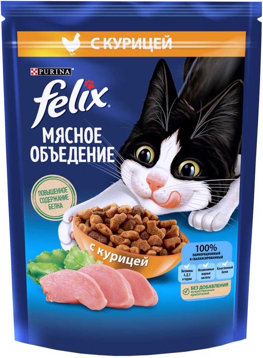 Сухой корм для кошек FELIX МЯСНОЕ ОБЪЕДЕНИЕ курица (0,2 кг)Возраст питомца
