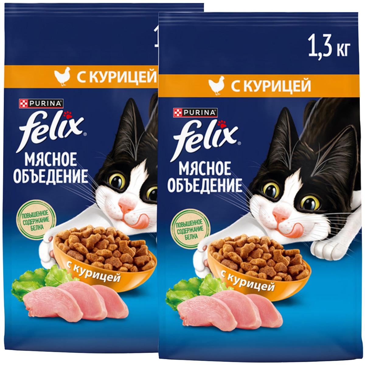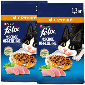 Сухой корм для кошек FELIX МЯСНОЕ ОБЪЕДЕНИЕ курица (1,3 + 1,3 кг)