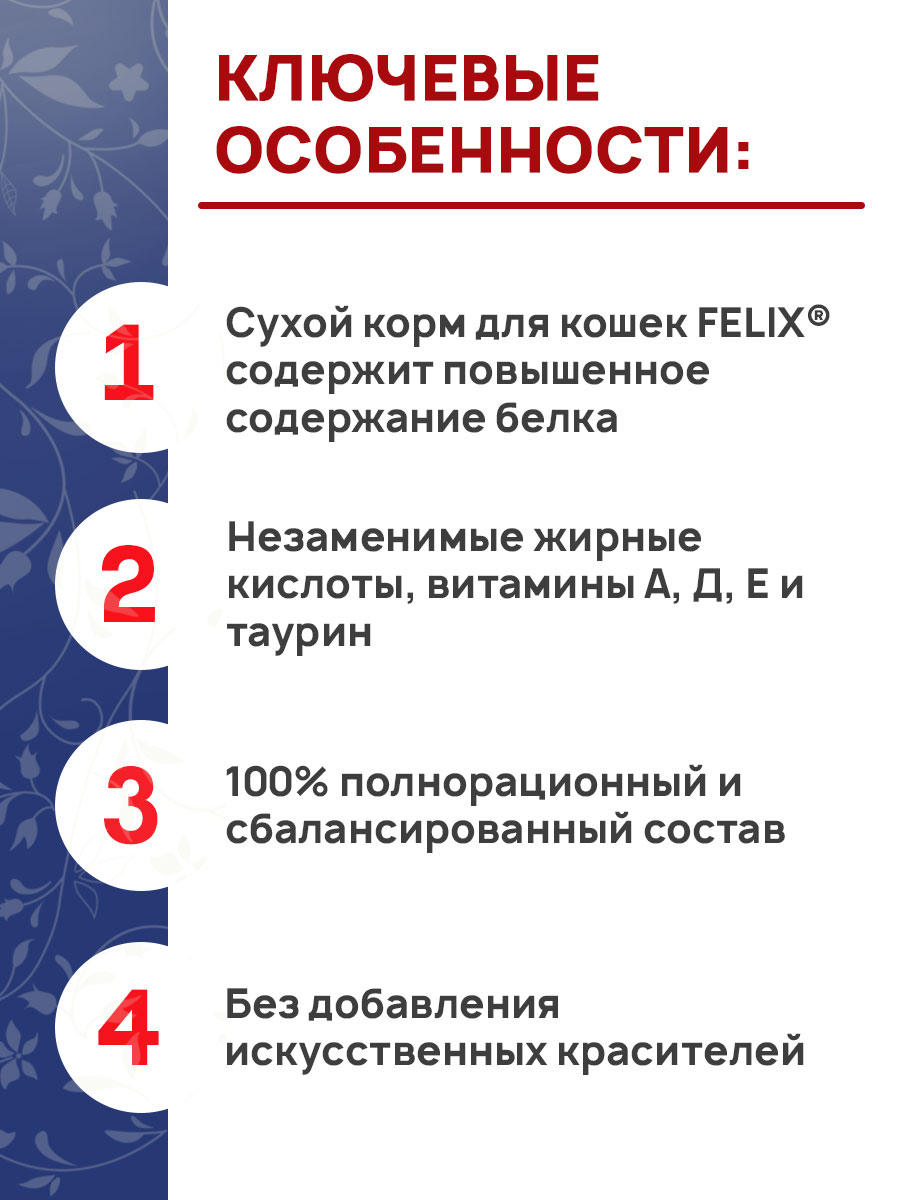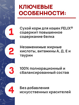Сухой корм для кошек FELIX® содержит повышенное содержание белка