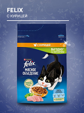 Сухой корм для кошек FELIX МЯСНОЕ ОБЪЕДЕНИЕ курица (3 + 3 кг)Возраст питомца