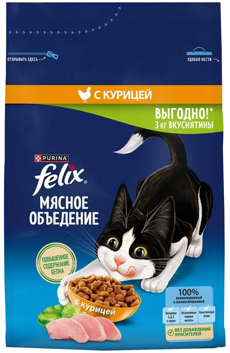 Сухой корм для кошек FELIX МЯСНОЕ ОБЪЕДЕНИЕ курица (3 кг)Возраст питомца