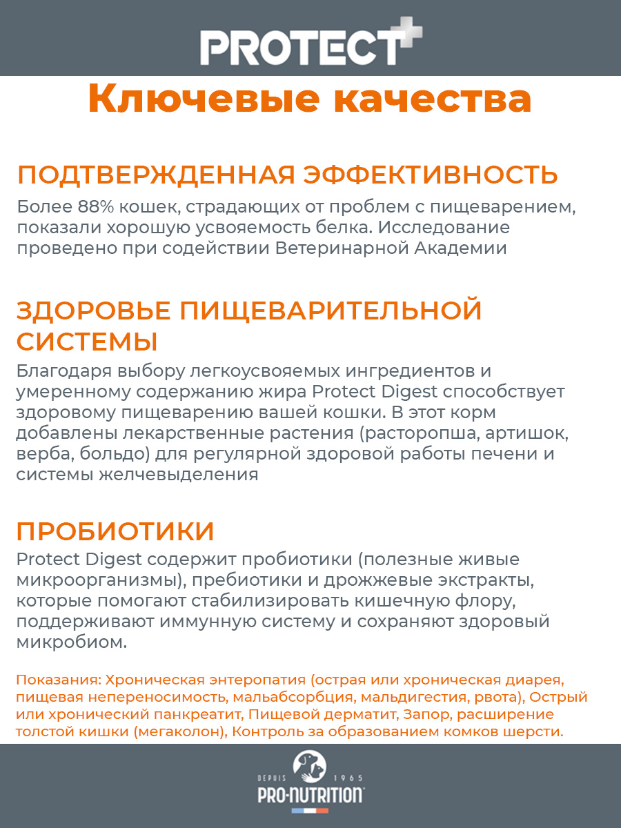 - Подтвержденная эффективность – более 88 % кошек, страдающих от проблем с пищеварением, показали хорошую усвояемость белка.