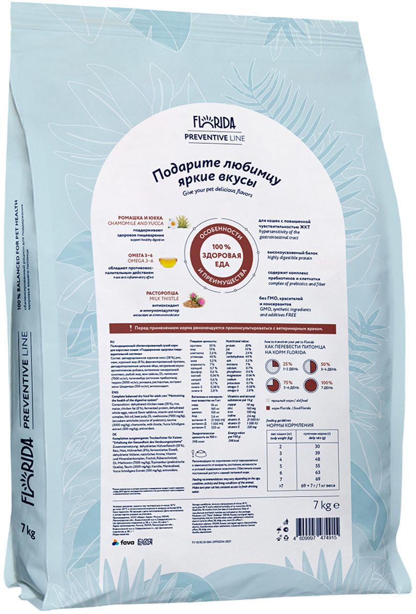 Сухой корм для кошек FLORIDA PREVENTIVE LINE GASTROINTESTINAL с чувствительным пищеварением (7 + 7 кг)