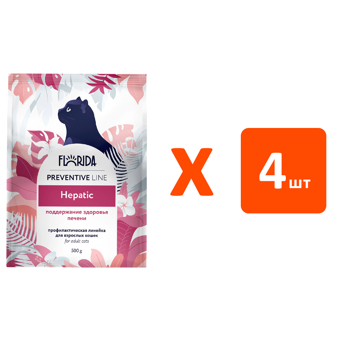 Сухой корм для кошек FLORIDA PREVENTIVE LINE HEPATIC при заболеваниях печени (0,5 кг х 4 шт)