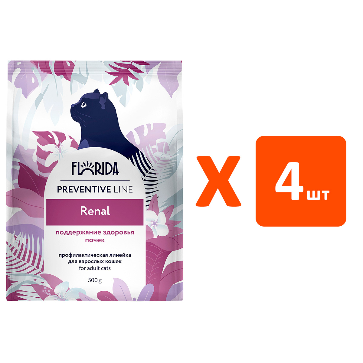 Сухой корм для кошек FLORIDA PREVENTIVE LINE RENAL при заболеваниях почек (0,5 кг х 4 шт)
