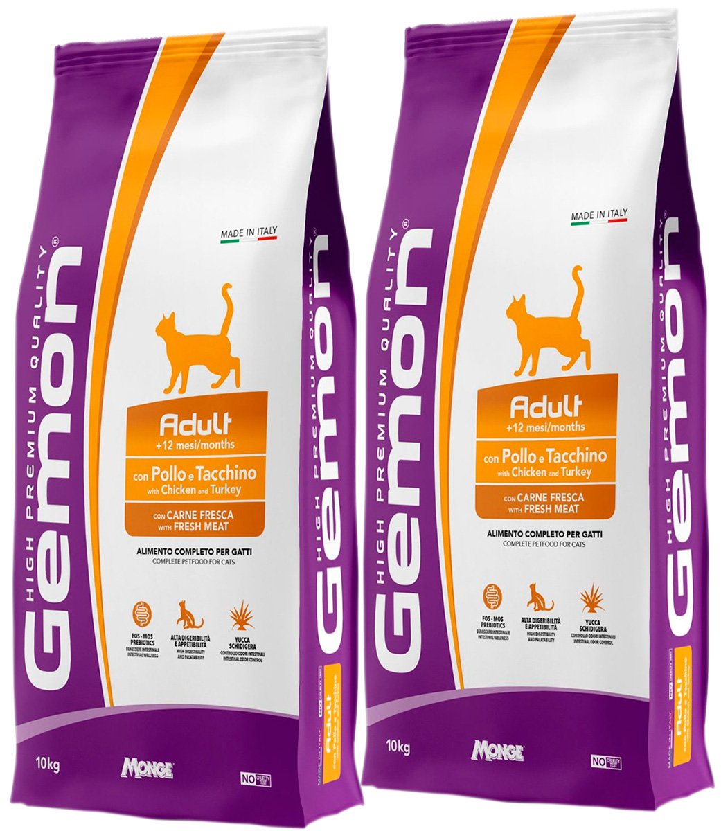 Сухой корм для кошек GEMON ADULT курица, индейка (10 + 10 кг)Возраст питомца