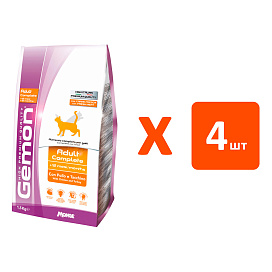 Сухой корм для кошек GEMON ADULT курица, индейка (1,5 кг х 4 шт)