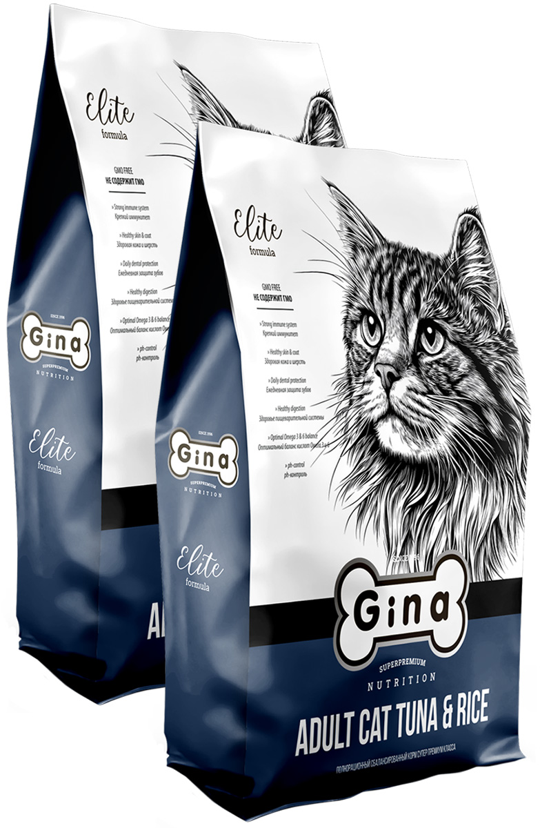 Сухой корм для кошек GINA ELITE CAT тунец, рис (1 + 1 кг)