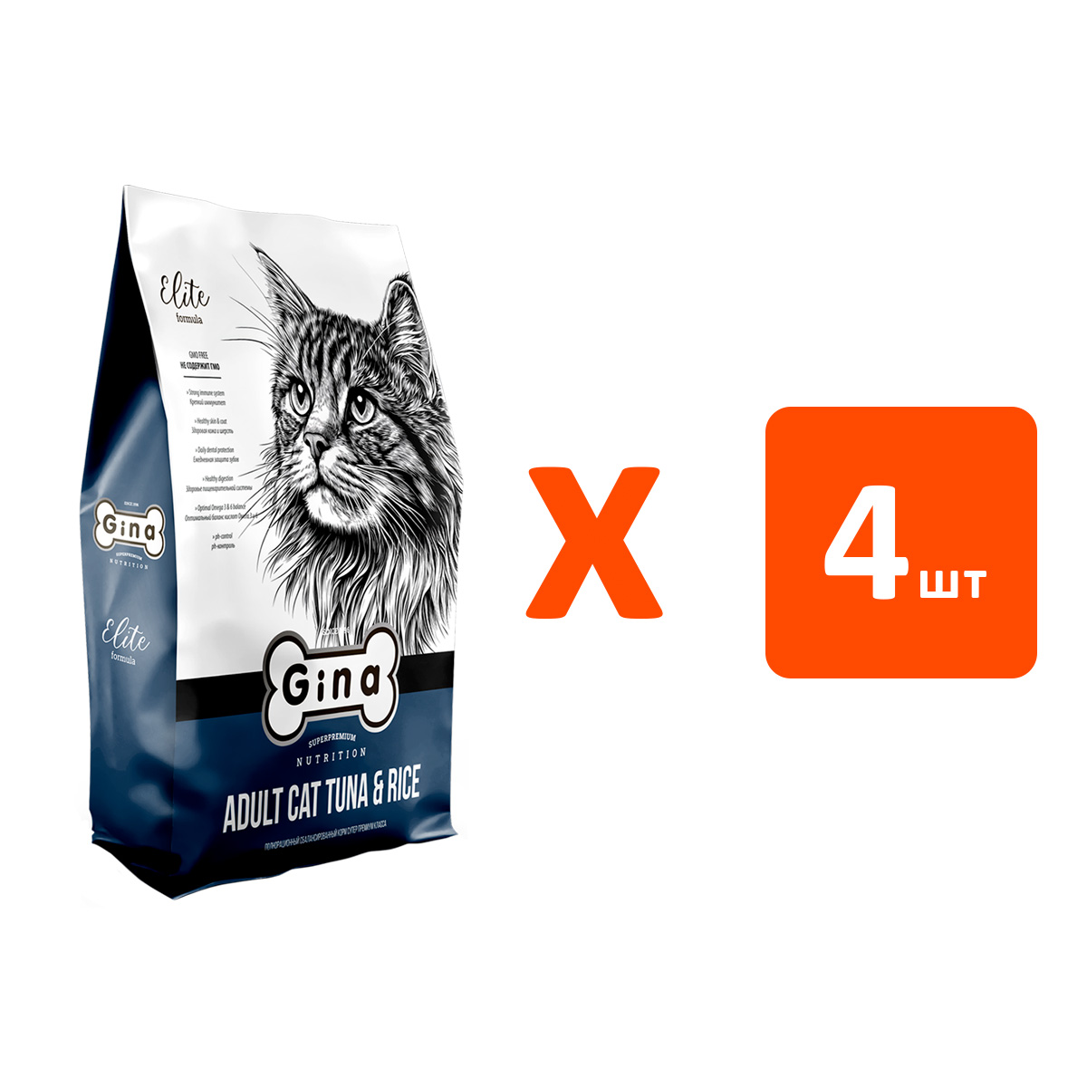 Сухой корм для кошек GINA ELITE CAT тунец, рис (3 кг х 4 шт)