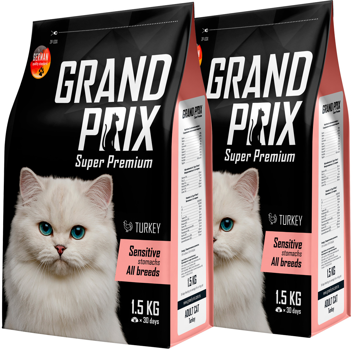 Сухой корм для кошек GRAND PRIX ADULT SENSITIVE STOMACH с чувствительным пищеварением индейка (1,5 + 1,5 кг)