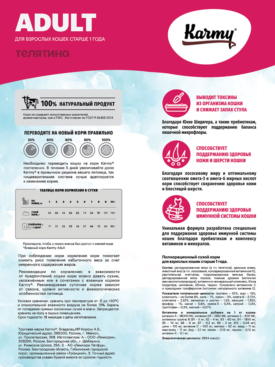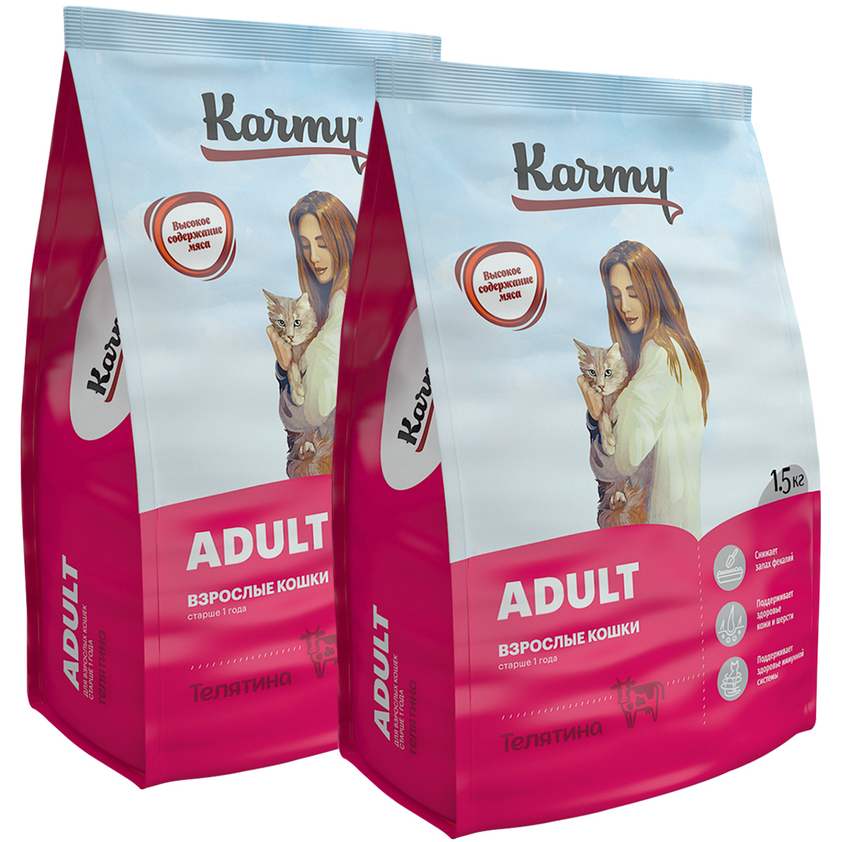 Сухой корм для кошек KARMY ADULT CAT телятина (1,5 + 1,5 кг)