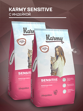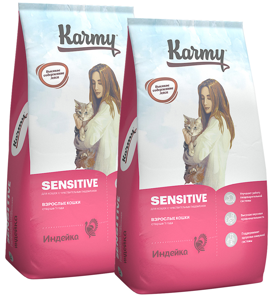 Сухой корм для кошек KARMY SENSITIVE с чувствительным пищеварением индейка (10 + 10 кг)