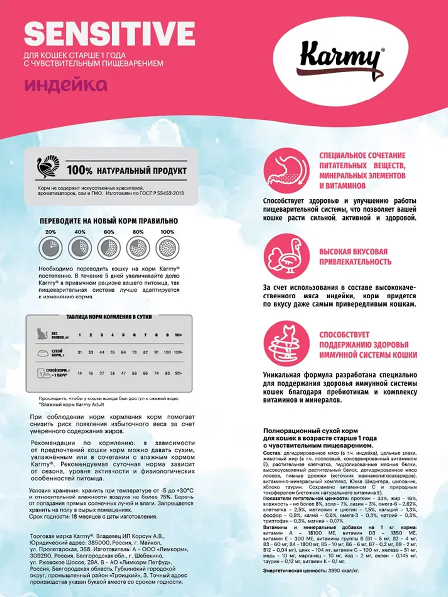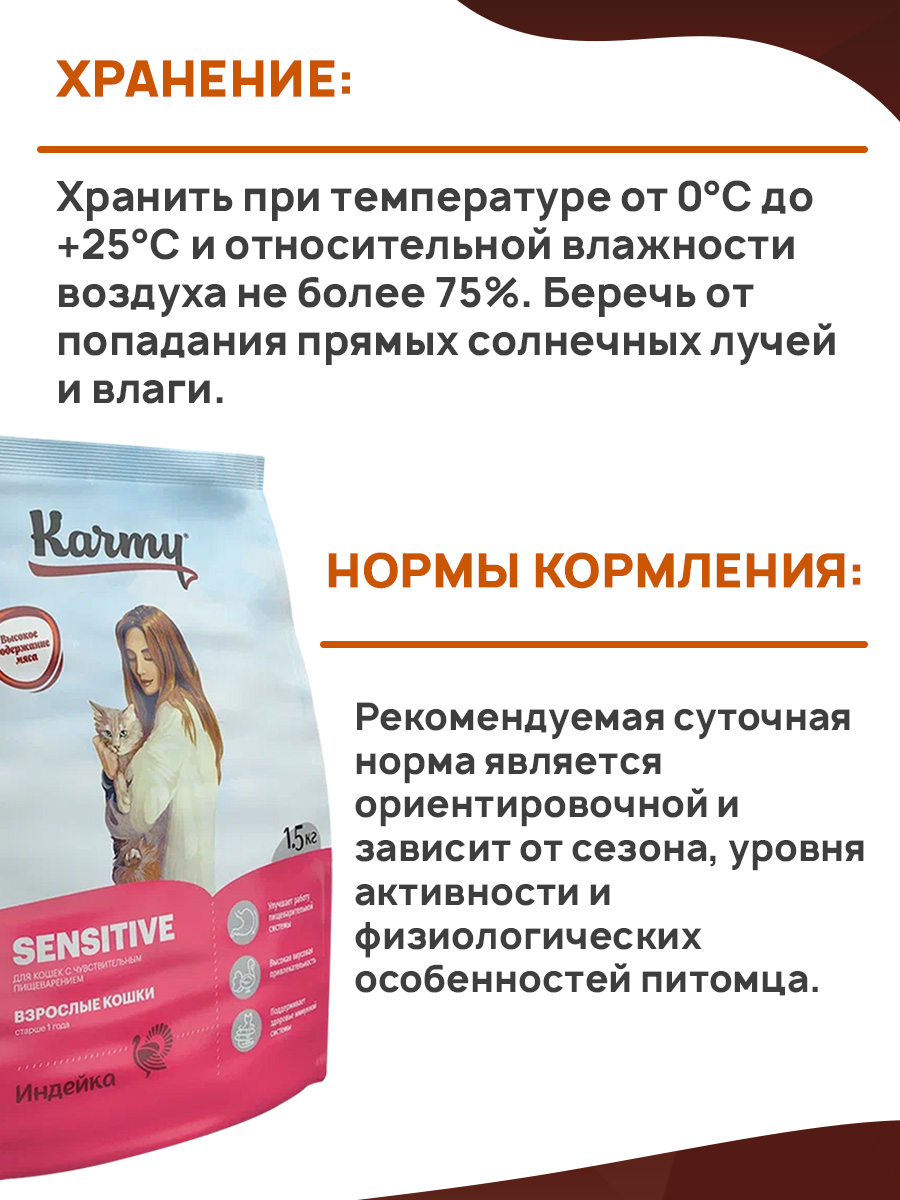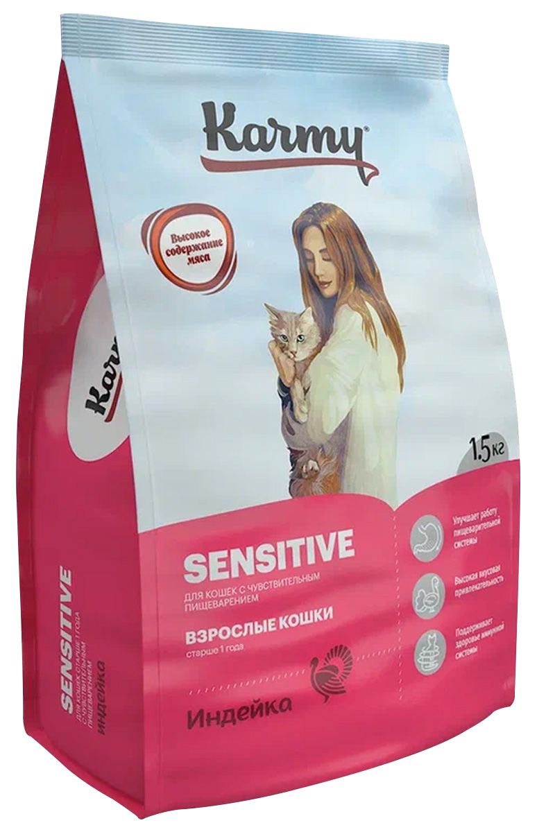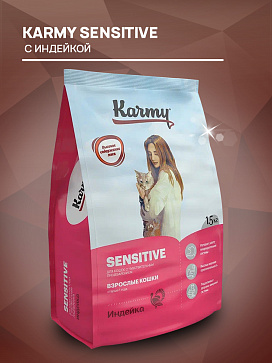 Сухой корм для кошек KARMY SENSITIVE с чувствительным пищеварением индейка (1,5 кг)