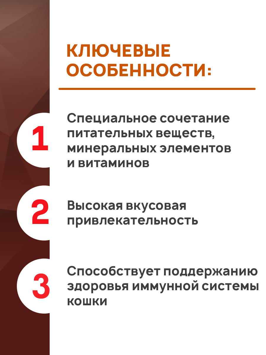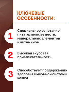 - Способствует поддержанию здоровья иммунной системы кошки
