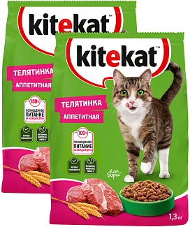 Сухой корм для кошек KITEKAT АППЕТИТНАЯ ТЕЛЯТИНКА (1,3 кг + 1,3 кг)