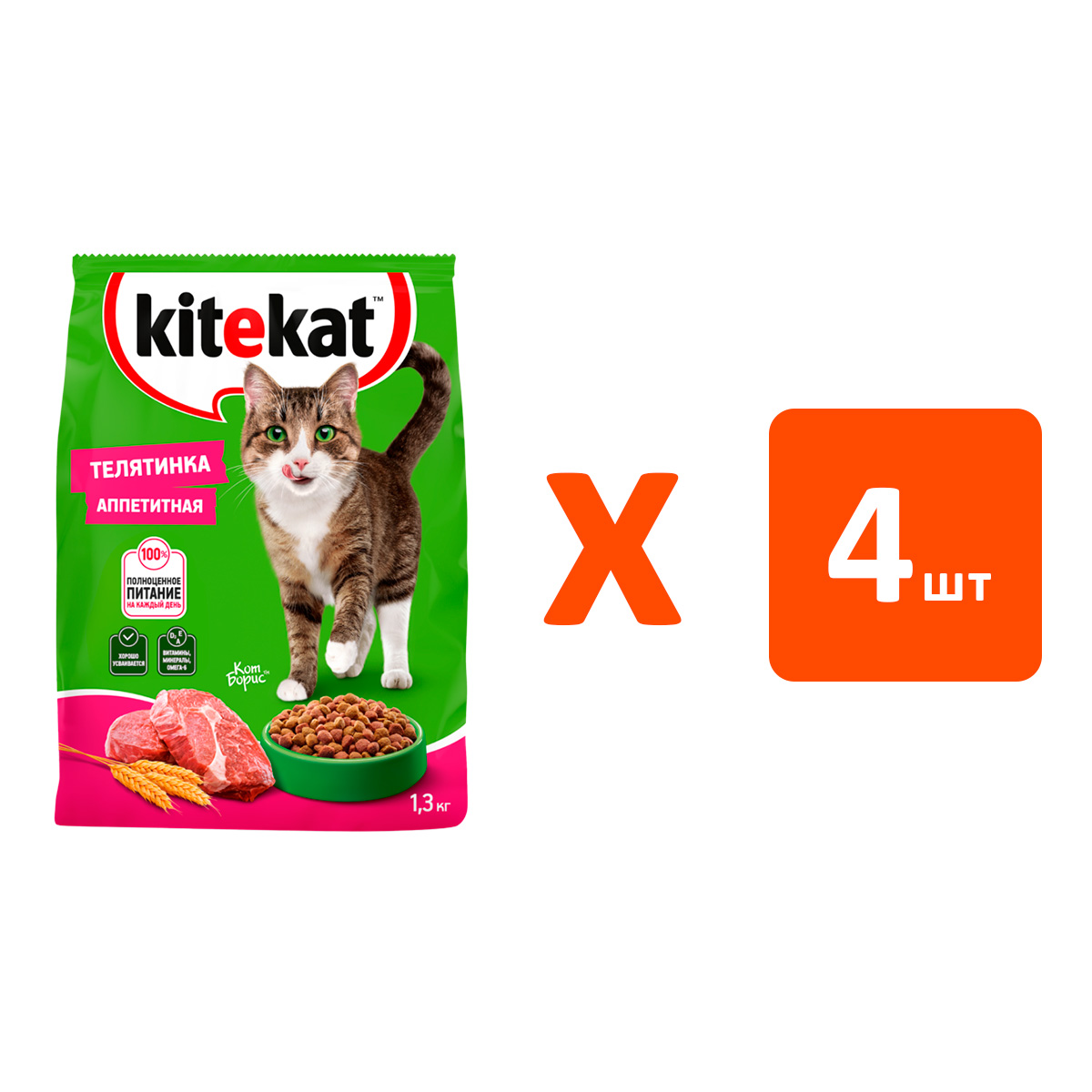 Сухой корм для кошек KITEKAT АППЕТИТНАЯ ТЕЛЯТИНКА (1,3 кг х 4 шт)