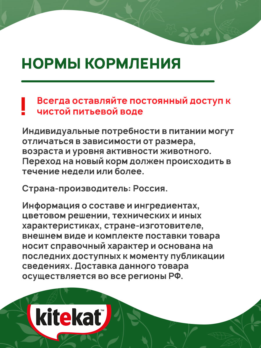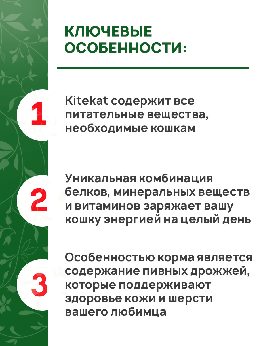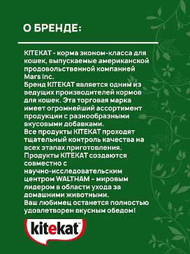 - Kitekat содержит все питательные вещества, необходимые кошкам.