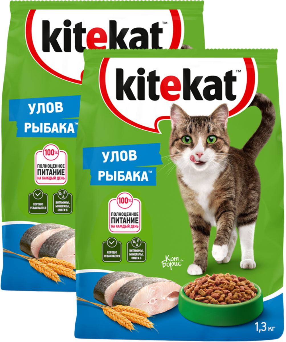 Сухой корм для кошек KITEKAT УЛОВ РЫБАКА (1,3 кг + 1,3 кг)