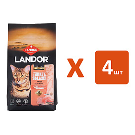 Сухой корм для кошек LANDOR ADULT HAIR & SKIN с чувствительной кожей и шерстью индейка, лосось (2 кг х 4 шт)