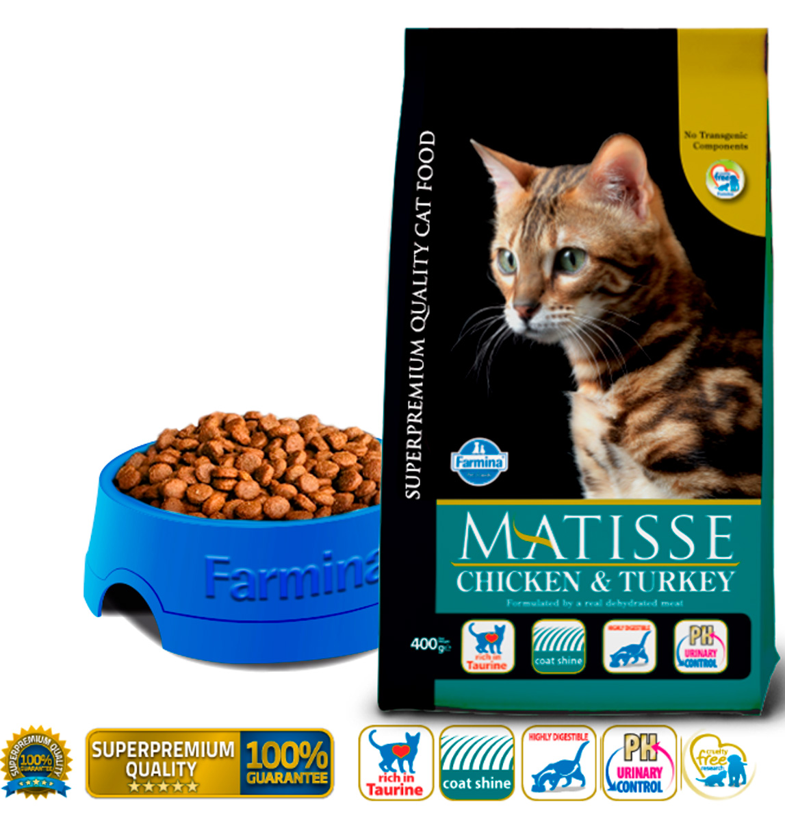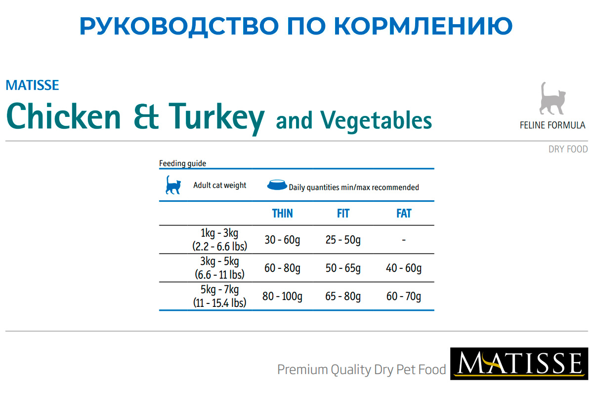 Обогащенная таурином рецептура корма MATISSE CHICKEN & TURKEY обеспечивает Вашему питомцу здоровую и активную жизнь.