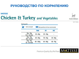 Обогащенная таурином рецептура корма MATISSE CHICKEN & TURKEY обеспечивает Вашему питомцу здоровую и активную жизнь.