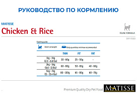 Обогащенная таурином рецептура корма MATISSE CHICKEN & RICE обеспечивает Вашему питомцу здоровую и активную жизнь.