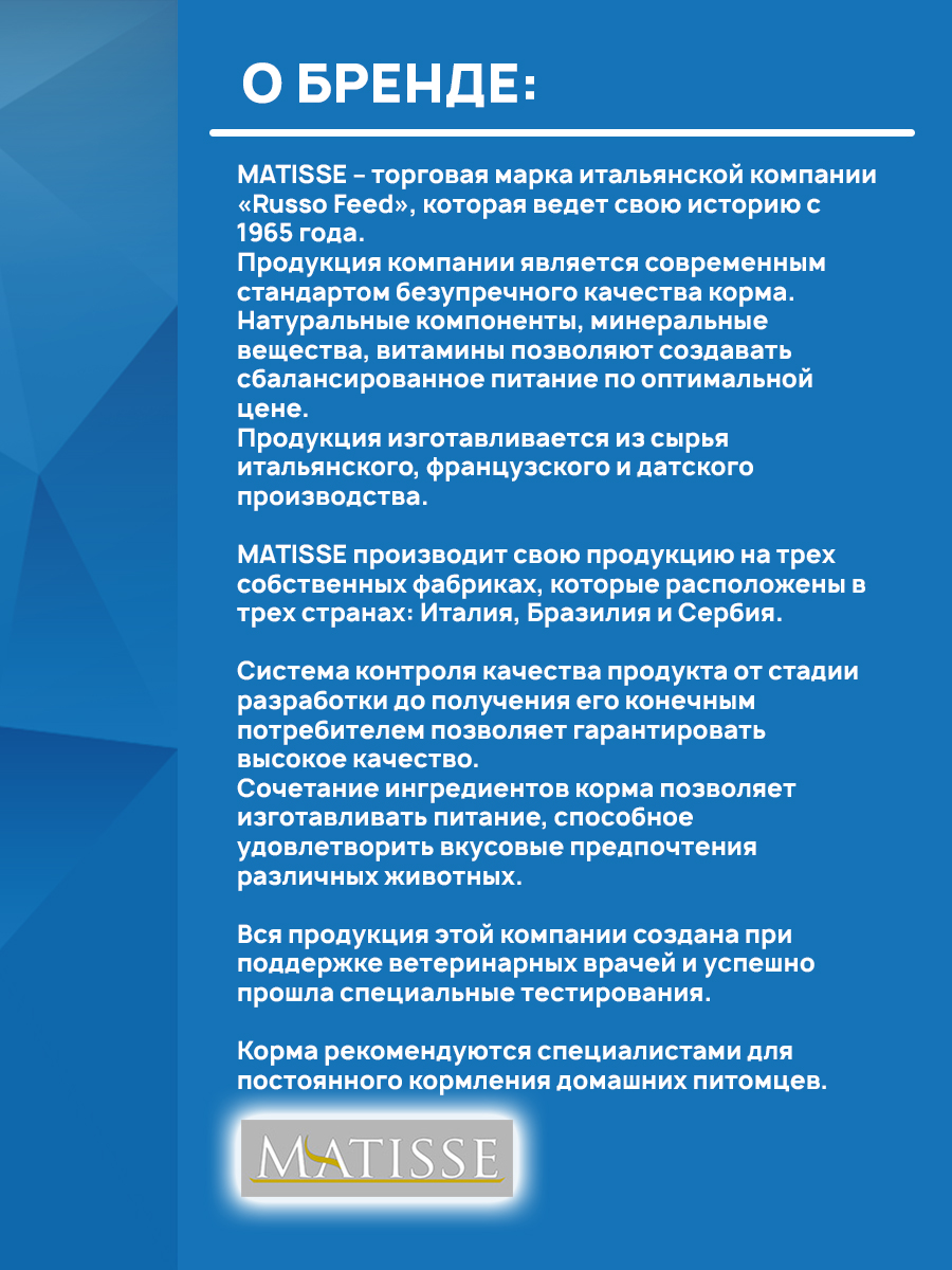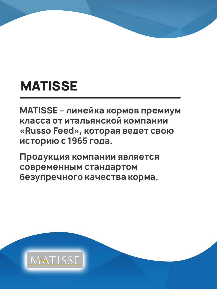 MATISSE – линейка кормов премиум класса от итальянской компании «Russo Feed», которая ведет свою историю с 1965 года.