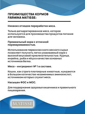 Преимущества кормов Farmina MATISSE: