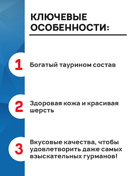 Корма содержат пребиотики для поддержания полезной микрофлоры, таурин для поддержки сердца.