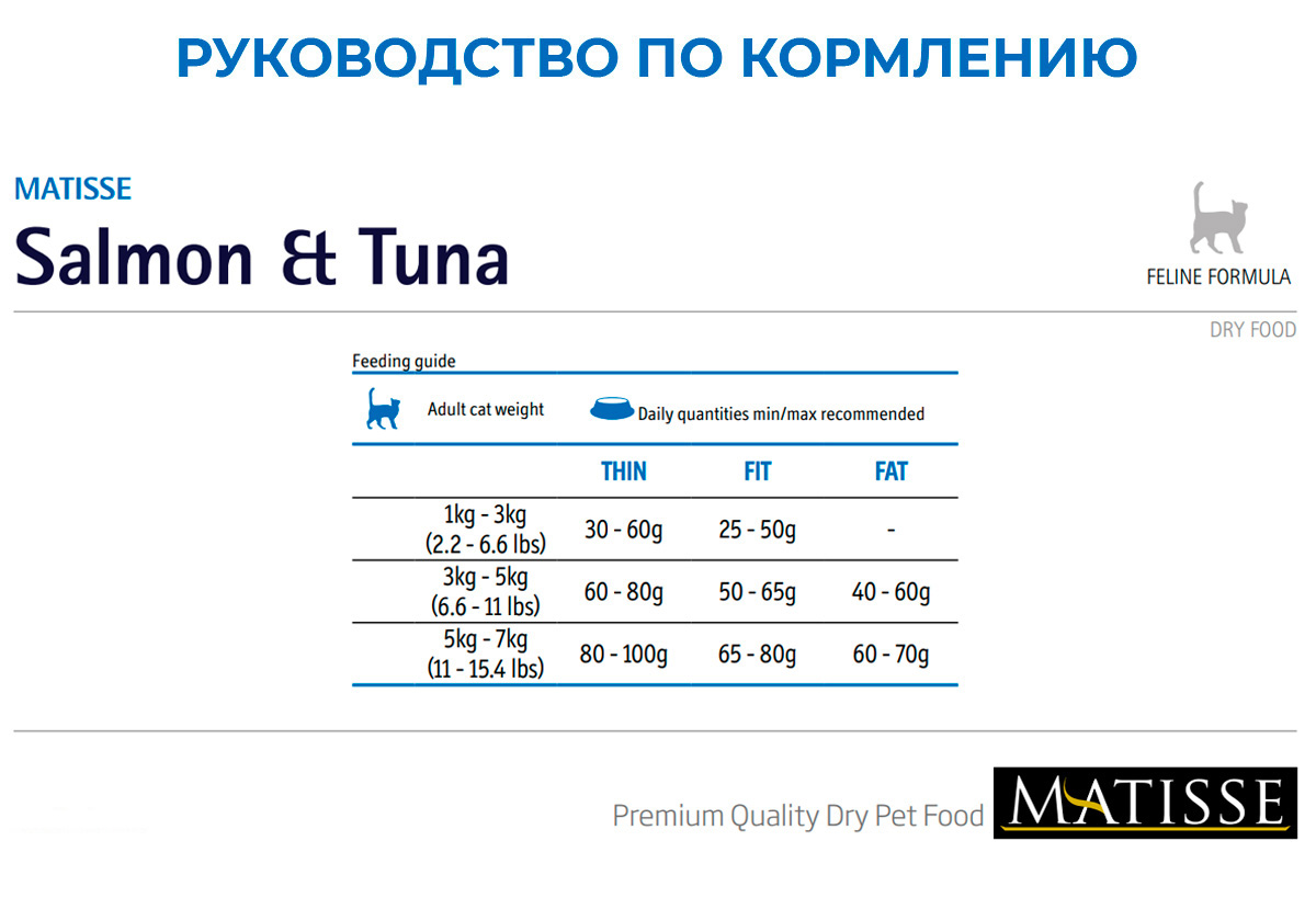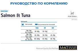 Обогащенная таурином рецептура корма MATISSE SALMON & TUNA обеспечивает Вашему питомцу здоровую и активную жизнь.