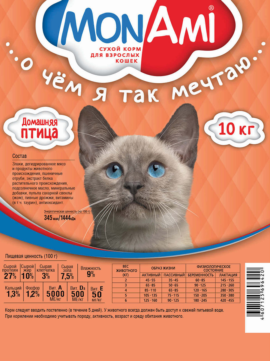 Сухой корм МонАми для кошек «Домашняя птица» обеспечивает Вашего питомца всем необходимым в течение всей жизни. Тщательно подобранный баланс мяса, питательных веществ витаминов и минералов обеспечивает устойчивое развитие кошки на протяжении всей жизни.