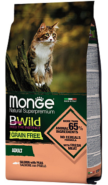 Сухой корм для кошек MONGE BWILD GRAIN FREE ADULT беззерновой лосось, горох (1,5 кг)