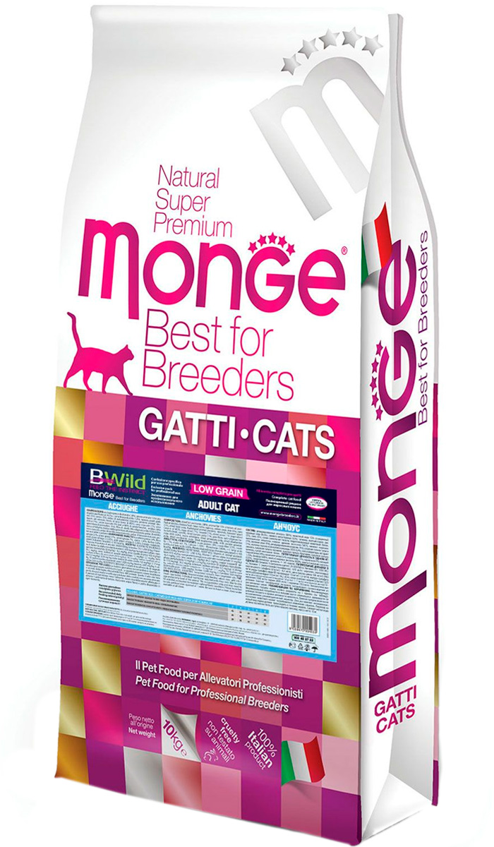 Сухой корм для кошек MONGE BWILD LOW GRAIN ADULT низкозерновой анчоусы (10 кг)