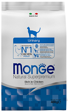Сухой корм для кошек MONGE URINARY для профилактики мочекаменной болезни курица (0,4 кг)