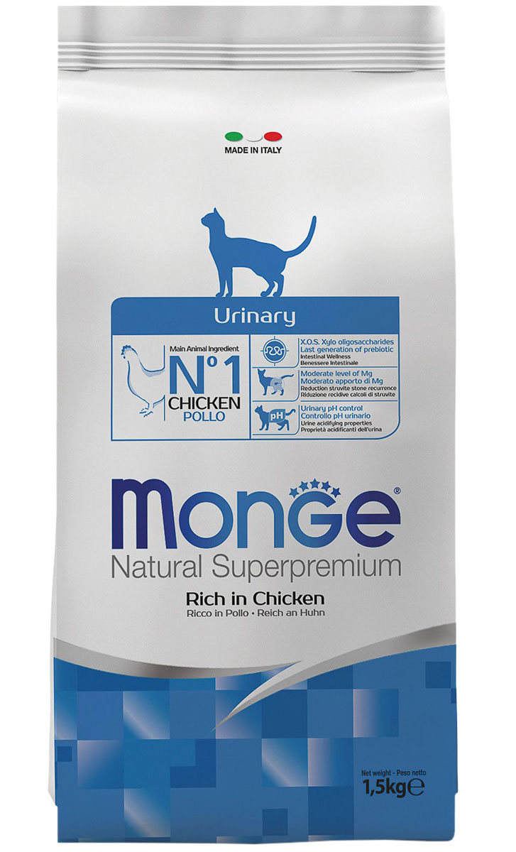 Сухой корм для кошек MONGE URINARY для профилактики мочекаменной болезни курица (1,5 кг)